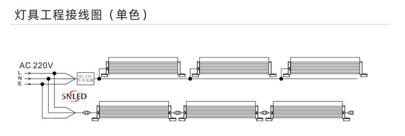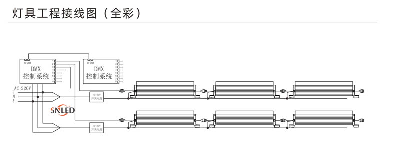 1、燈具DC24V并接不超過30/16臺,超過30/16臺請增加電源輸入線;
