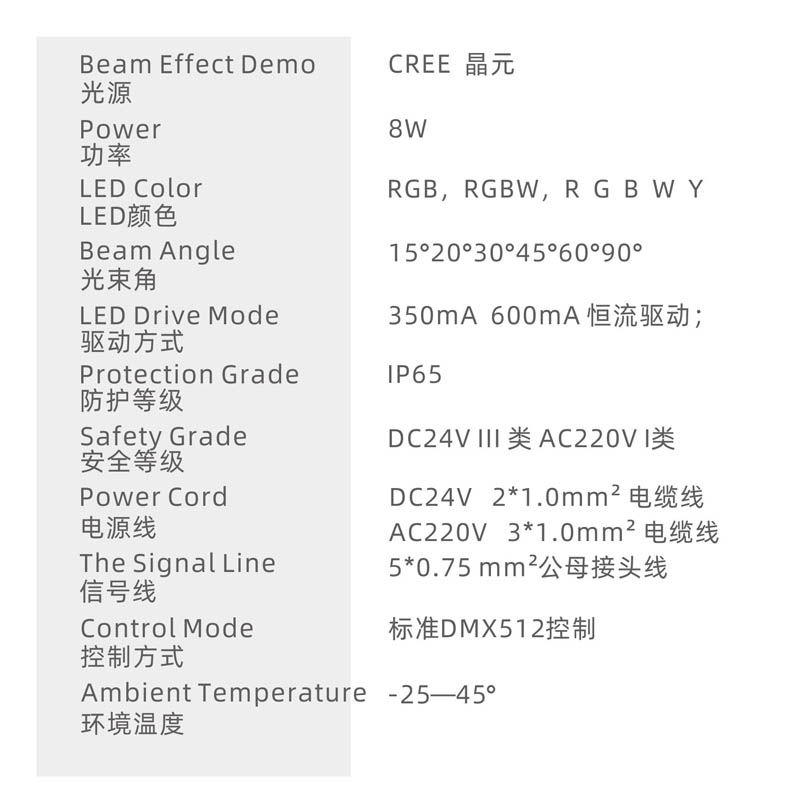 控制方式:標(biāo)準(zhǔn)DMX512控制