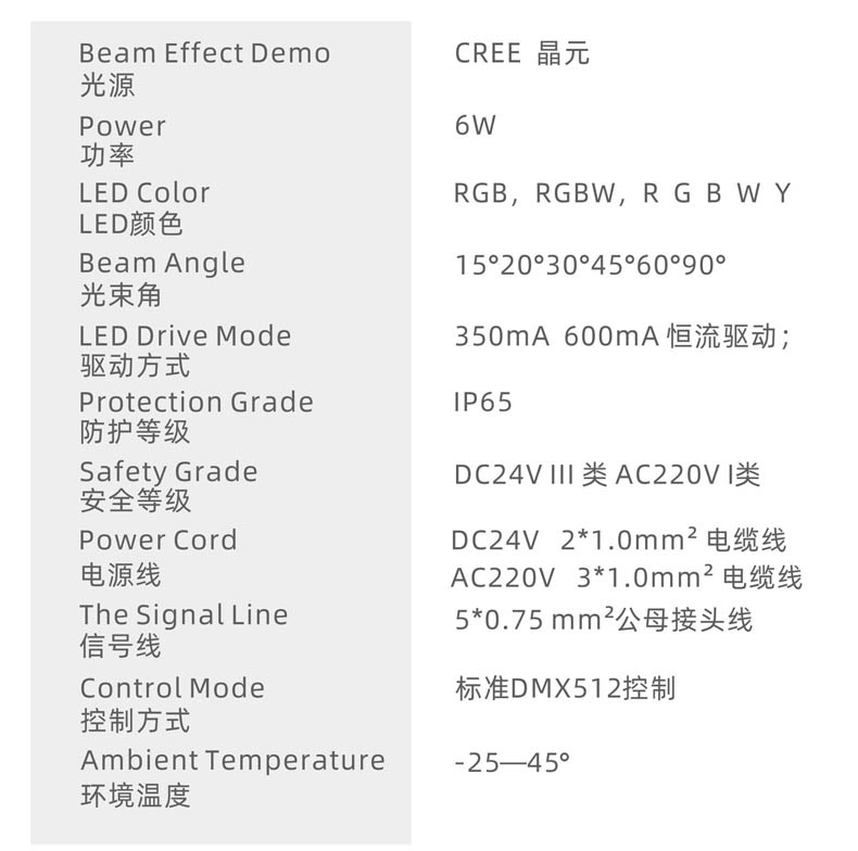 控制方式:標(biāo)準(zhǔn)DMX512控制
